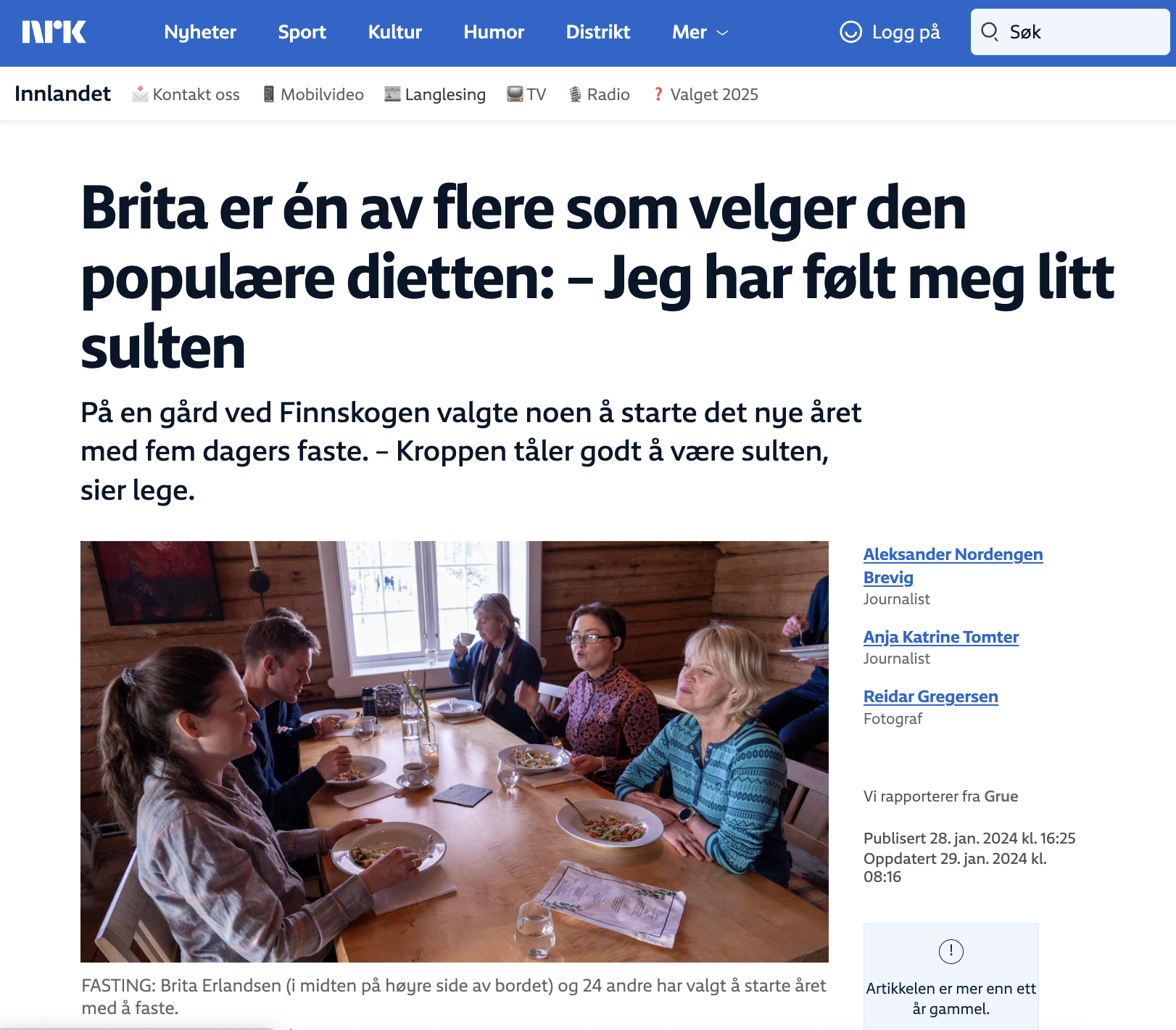 Da NRK besøkte oss fikk de et innblikk i hvordan fasteoppholdet oppleves i praksis.